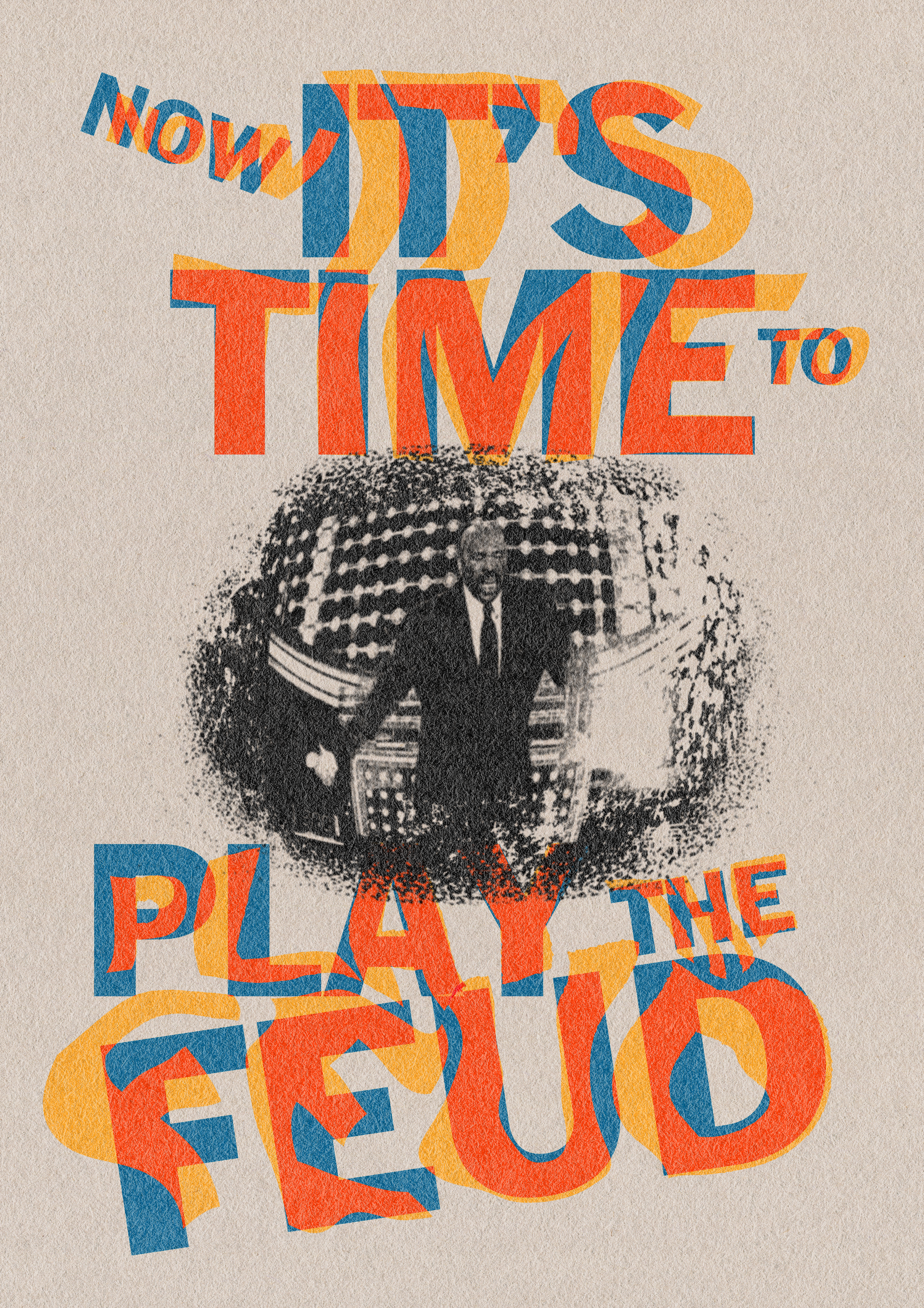 Any other graphic designer ever be playing around with type treatments and photo rendering styles and then fall into a timeline where you imagine a Hunger Games/Squid Game style game show hosted by a crazed animatronic Steve Harvey, where survival is the prize and there's sick merch?